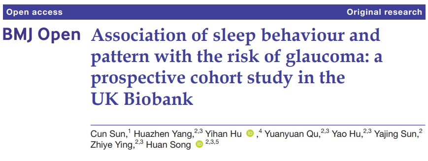 2022年11月1日,北京惠民医院、四川大学华西医院的研究人员在" BMJ Open "期刊上发表了一篇题为" Association of sleep behaviour and pattern with the risk of glaucoma:a prospective cohort study in the UK Biobank "的研究论文。