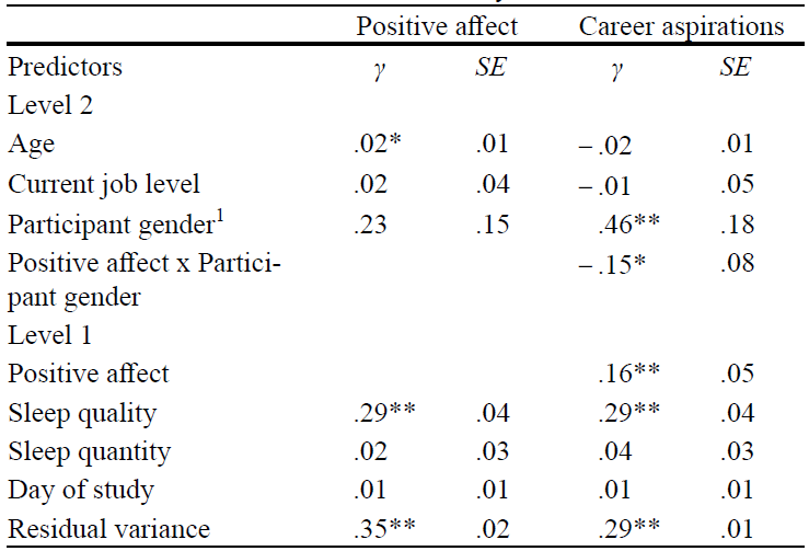 在该研究中,研究人员分析了美国的135名全职员工,在为期2周内进行了2272次观察,分析了参与者前一天晚上的睡眠质量、时长以及当前情绪状态,晚上调查了参与者在公众中的责任感、地位以及想要升职的欲望。