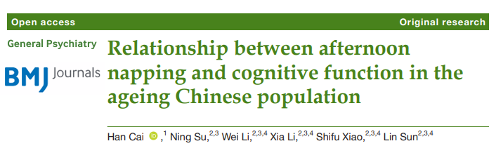 2021年1月25日,上海交通大学孙林教授和芜湖的第四人民医院韩彩教授等人在 BMJ 子刊" General Psychiatry "期刊上在线发表了题为"Relationship between afternoon napping and cognitive function in the ageing Chinese population"的研究,该研究表明,午睡能有效预防痴呆,有规律地午睡可能与提高思维敏捷性有关。