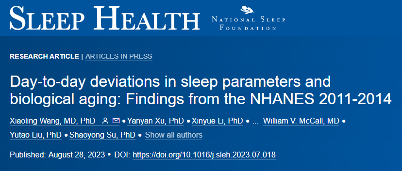 近日,美国奥古斯塔大学、中国香港城市大学的研究人员在" Sleep Health "期刊上发表了一篇题为" Day-to-day deviations in sleep parameters and biological aging:Findings from the NHANES 2011-2014 "的研究论文。