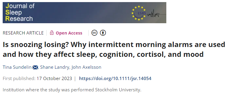 2023年10月17日,瑞典斯德哥尔摩大学的研究人员在" Journal of Sleep Research "期刊上发表了一篇题为" Is snoozing losing?Why intermittent morning alarms are used and how they affect sleep,cognition,cortisol,and mood "的研究论文。