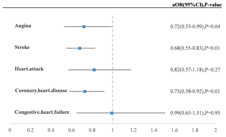 对不同类型的心血管疾病分析发现,周末补觉与较低的心绞痛、中风和冠心病相关。