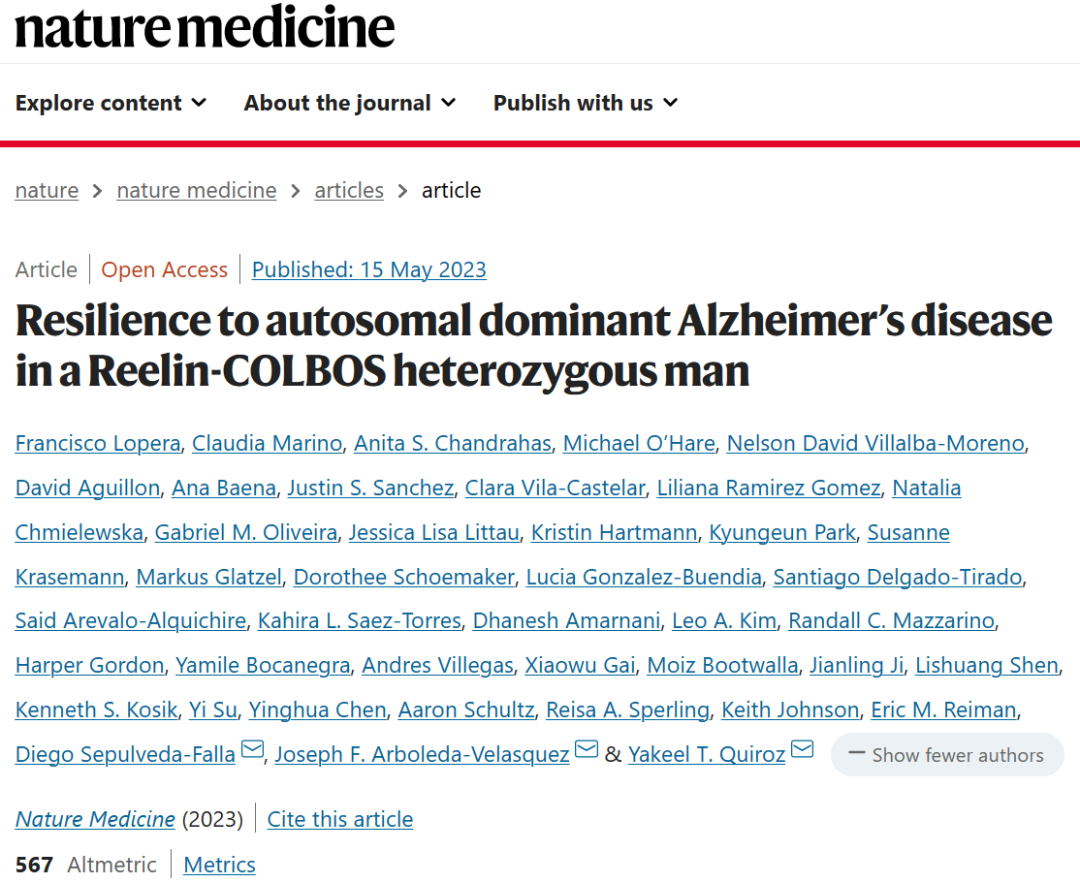 研究者认为,这足以说明RELN-COLBOS是一种功能获得性突变,对tau病有明显的保护作用。