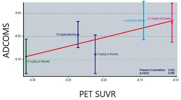 2b期临床研究中可见Aβ清除与认知评分正相关