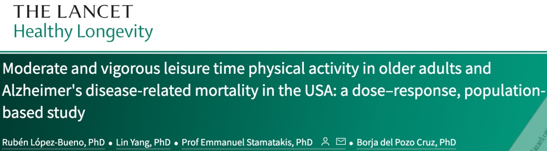 [1].López-Bueno R, Yang L, Stamatakis E, Del Pozo Cruz B. Moderate and vigorous leisure time physical activity in older adults and Alzheimer's disease-related mortality in the USA: a dose-response, population-based study. Lancet Healthy Longev. 2023;4(12):e703-e710. doi:10.1016/S2666-7568(23)00212-X
