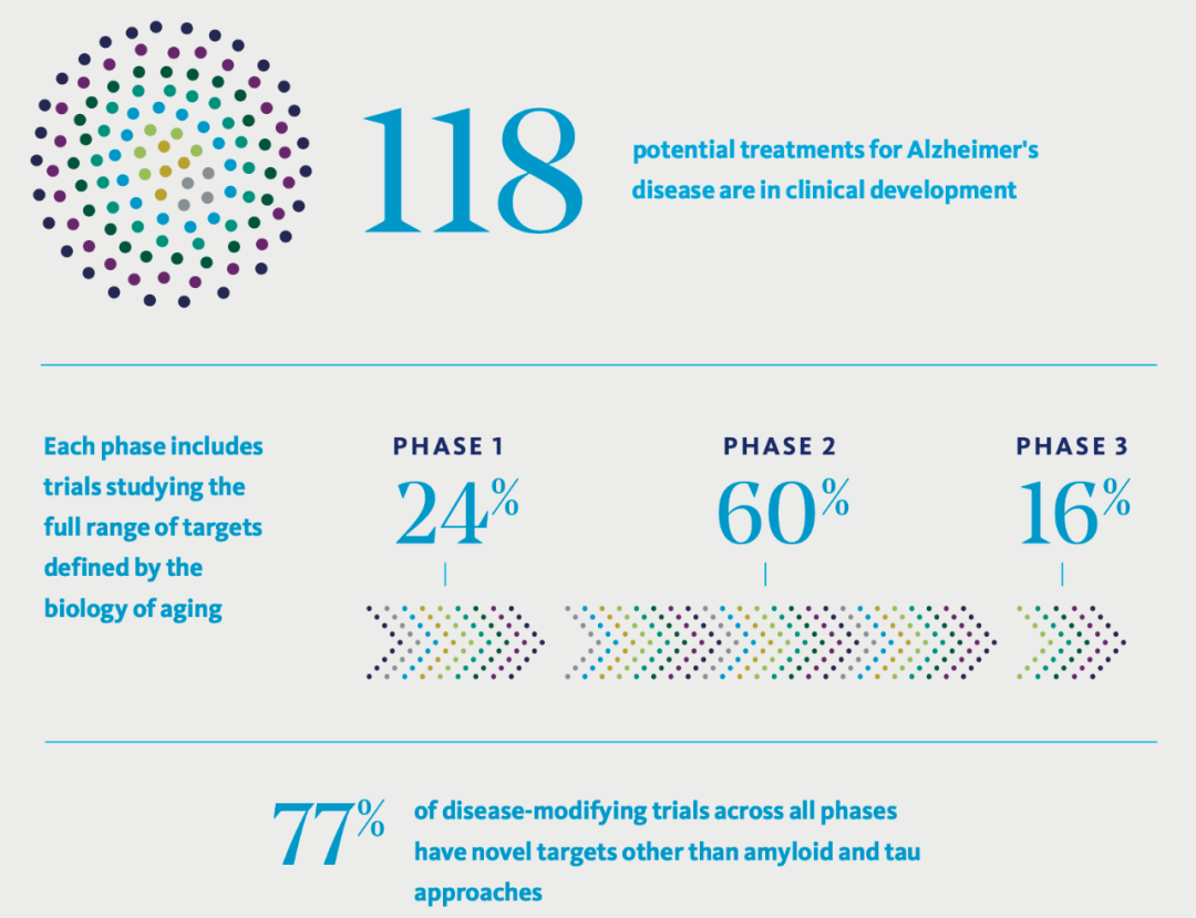 据ADDF统计,正在开展的118个阿尔茨海默病治疗临床试验中,77%用的是Aβ和Tau之外的新靶点。