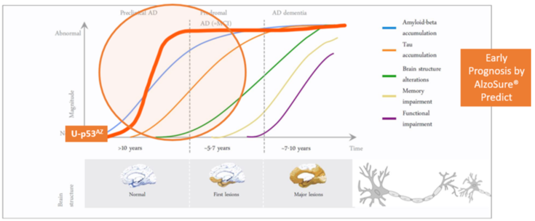 这个检测方法的名字叫AlzoSure®Predict,它也是一种血检手段,是通过抗体检测p53蛋白构象的变化(简称:U-p53AZ)。从资料来看,U-p53AZ这个AD生物标志物是今年发现的。