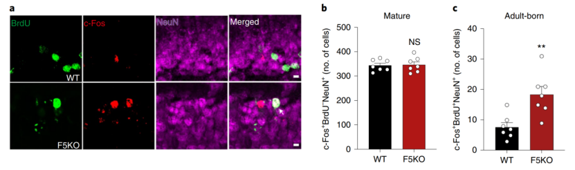 F5KO小鼠海马区成年新生神经细胞异常增多