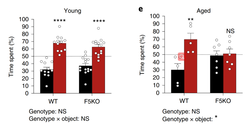 而在老年小鼠模型中,F5KO小鼠同样出现了更明显的记忆和海马神经可塑性的降低,并通过进一步研究证实,鸢尾素发挥作用的区域为海马齿状回。
