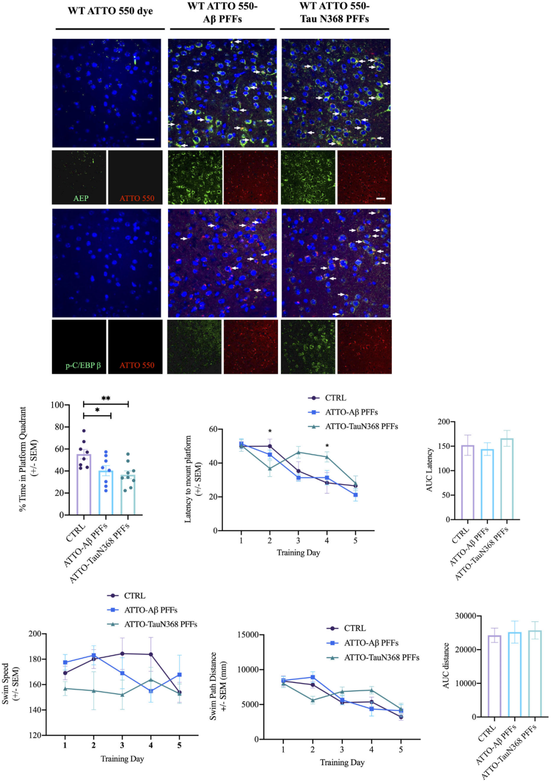 利用这一结肠局部注射Aβ及Tau N368的模型,研究者进一步证实了肠道中AD致病蛋白可直接激活C/EBPβ/AEP通路,并导致认知功能障碍。