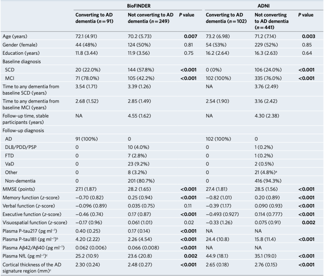 在本研究中,285名参与者被临床医生判断为可能发生认知障碍,其中72名参与者在随访时进展为AD。