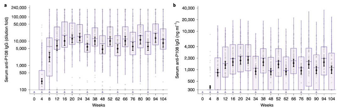 在所测的患者中,92.3%患者体内产生的抗体为IgG1主导型。此外,年龄对AADvac1疫苗诱导的抗体滴度水平影响较小,虽然数据表明年轻患者对疫苗的反应更好一些。