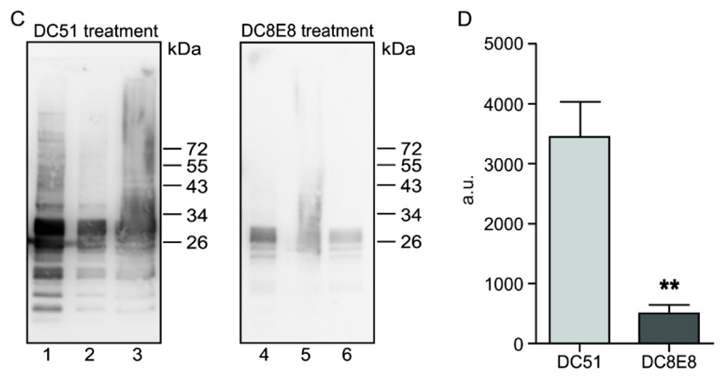 相比于对照组(DC51),DC8E8免疫疗法有效减少了小鼠脑内Tau蛋白寡聚体