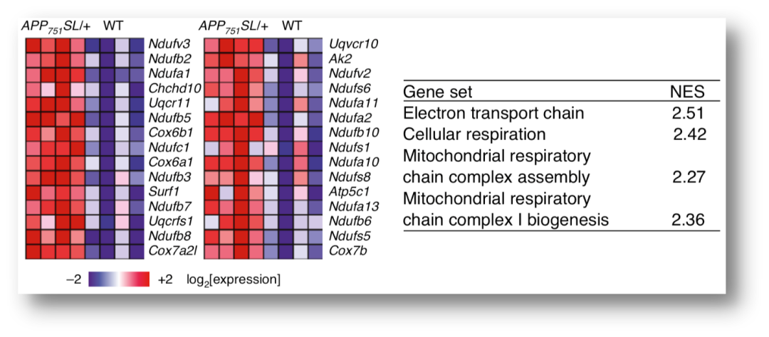 AD小胶质细胞中参与有氧呼吸相关的基因转录上调