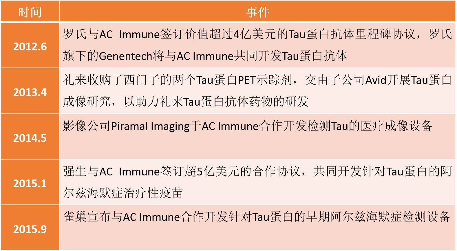 从2012年开始,各大药企开始进军针对Tau蛋白的药物领域