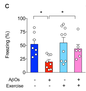 2019年1月8日,巴西科学家Fernanda Felice教授带领的研究团队发现,运动(游泳)时肌肉释放的一种叫做鸢尾素的激素,可以进入大脑,增加大脑海马体中鸢尾素的水平,从而拯救因AD造成的突触可塑性和记忆能力损失。这项研究对于AD的预防和治疗有重要的指导意义,相关论文发表在著名学术期刊《自然医学》上[2]。