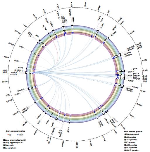 最后,研究人员还研究了与RIPK1基因相关的819个基因,其中大多数的表达都会受到RIPK1的影响,也包括已经被证实与AD发生有关的基因。他们提出,RIPK1可能是调控AD相关基因表达的一个重要因素。