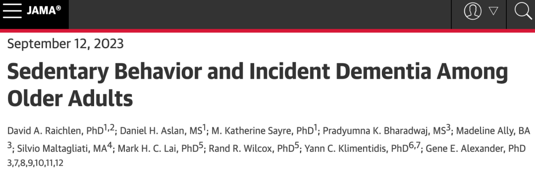 [4].Raichlen DA, Aslan DH, Sayre MK, et al. Sedentary Behavior and Incident Dementia Among Older Adults. JAMA. 2023;330(10):934-940. doi:10.1001/jama.2023.15231