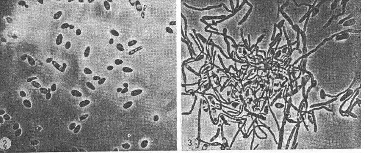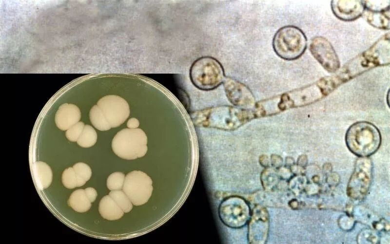 酵母形态(左)和菌丝形态(右)的白色念珠菌