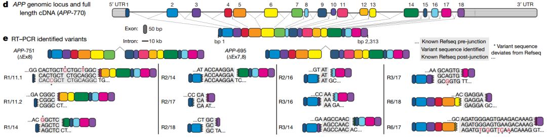 对比AD患者和健康人的神经元,差别很惊人。来自5名AD患者的96424个神经元中,共检测到了6299种独特的APP序列,包括45种外显子连接;同样来自5名健康人的162248个神经元中,则只发现了1084种独特的APP序列,只有20种外显子连接。