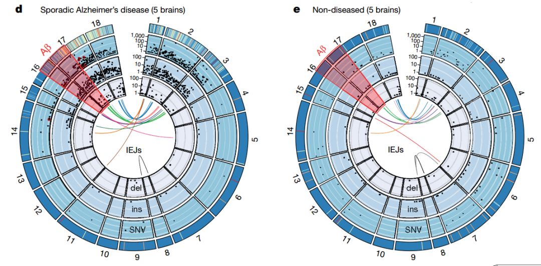 来自AD患者的gencDNA不单单是数量上有近六倍的碾压,其中还有11种已经被证实与AD的家族性发病有关了!而这些变化在非神经元细胞中是不存在的。