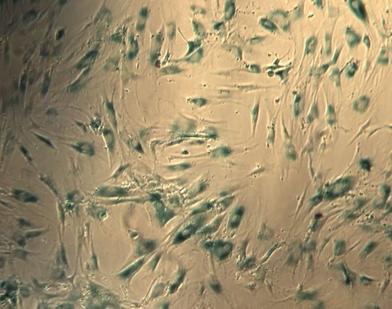 基因受损后,有些细胞会进入一种不生不死的衰老状态,失去增殖能力但依旧保有分泌功能。衰老细胞通常高表达β半乳糖苷酶,还会向周围分泌炎性因子、生长因子等,与很多年龄相关的慢性病有密切关系[7]。