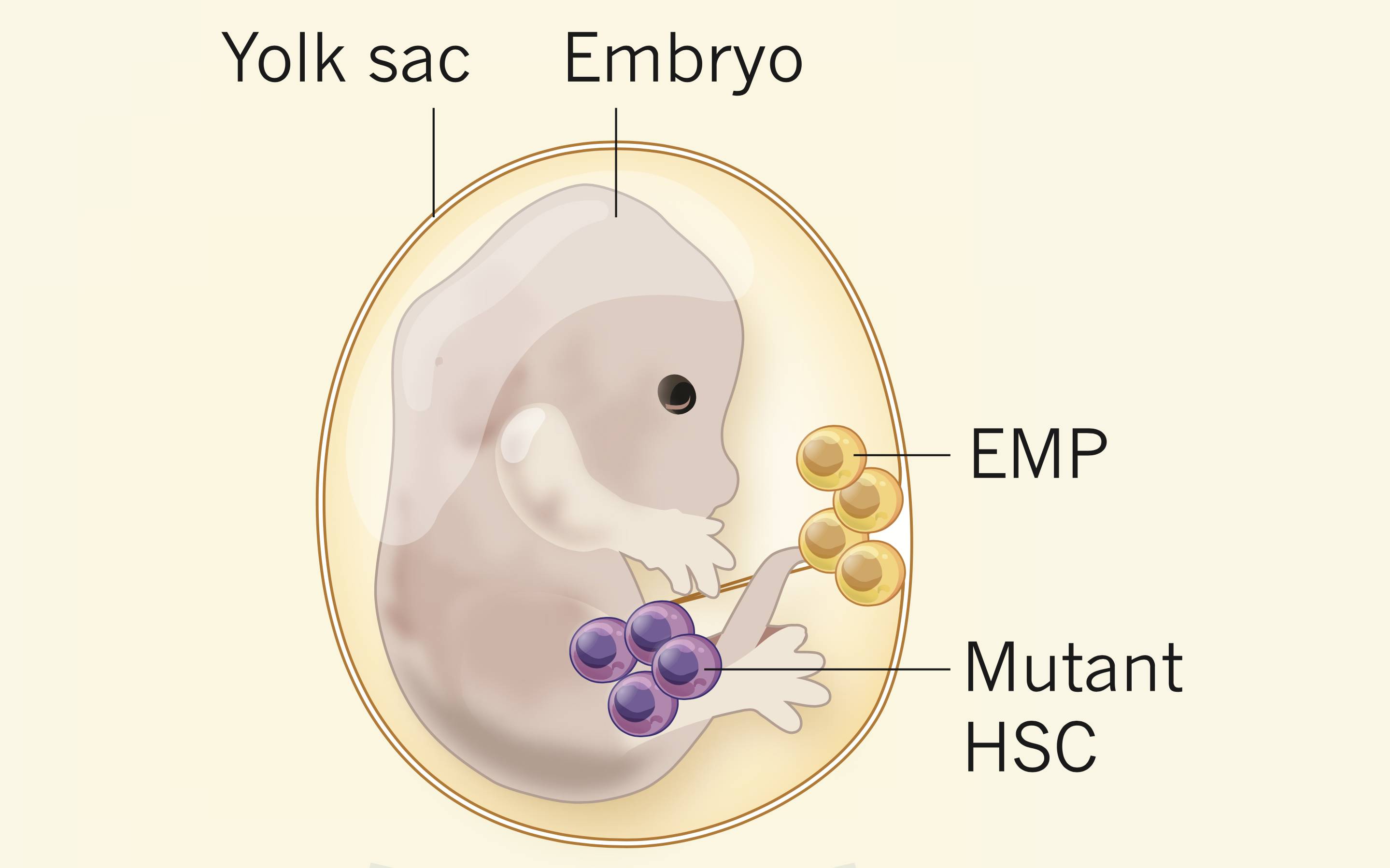 他们首先设计了一种基因工程小鼠,让BRAF(V600E) 突变基因只存在于小鼠胚胎卵黄囊中的红系-髓系前体细胞中。当小鼠出生并慢慢长大后,研究人员持续观察他们的行为、病理损伤的变化。同时,他们还改造了胚胎的造血干细胞(HSC)基因,不过BRAF(V600E) 突变要么让小鼠在胚胎期就死掉了,要么就在成年时产生了肿瘤。