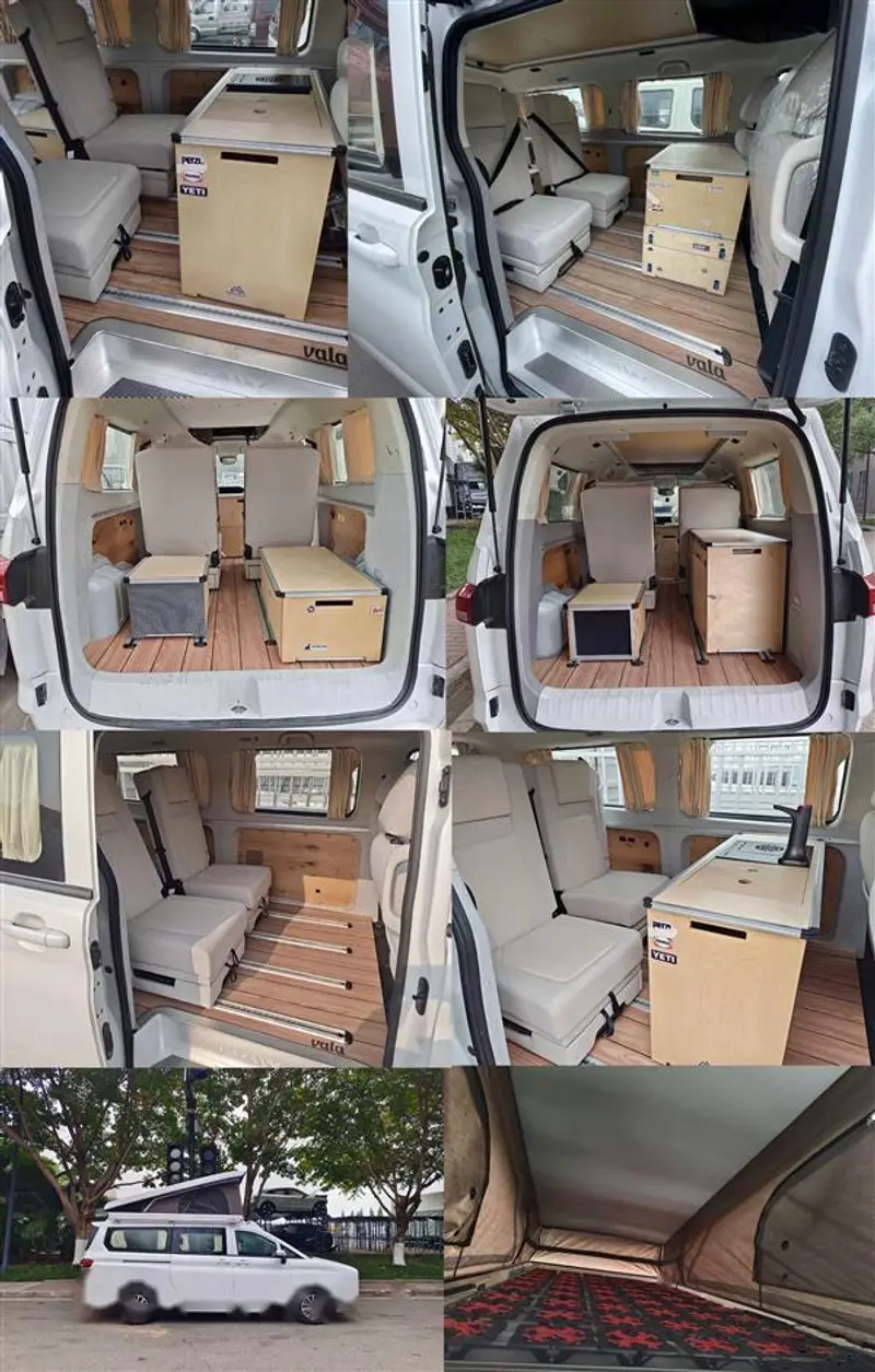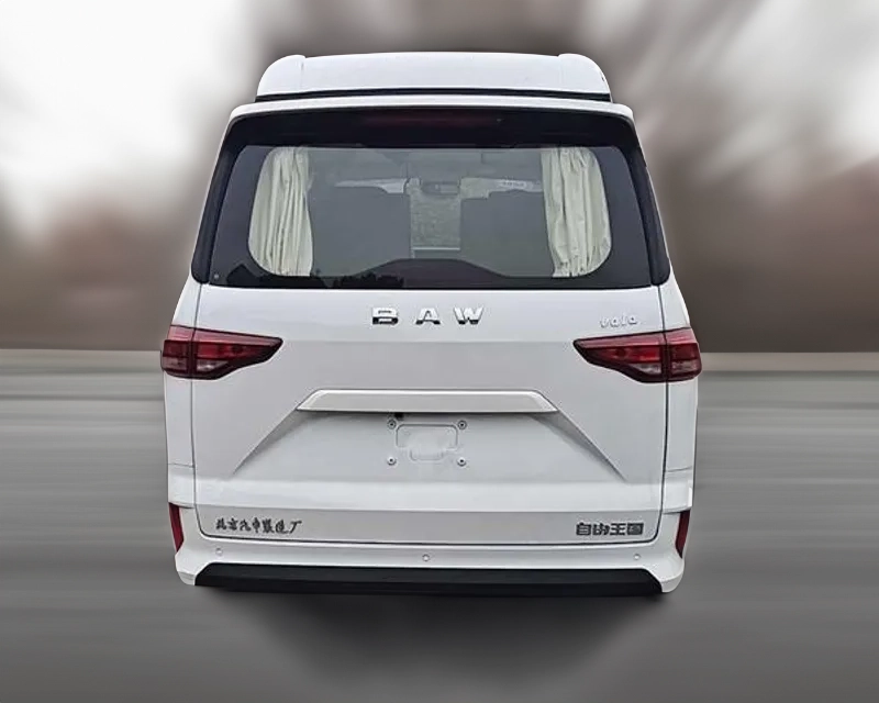 车辆的基本架构延续了锐胜王牌M7长轴版的设计,单侧侧滑门使车身线条更加流畅。腰线硬朗,前机舱部分相比锐胜王牌M7有所增长。该车采用了可升顶式设计,打开升顶后形成车顶躺卧区域,提供更多实用性。此外,车顶右侧还配备了侧边帐,为乘客提供更多休息空间。车尾部分与锐胜王牌M7保持一致,后尾门开口面积较大,尾灯造型简洁,BAW字母车标醒目。后备箱的开口离地距离较低,方便装卸物品。