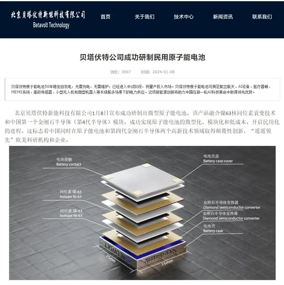 贝塔伏特公司的微型原子能电池研发成功,具备超长续航、体积小、密度高、重量轻和高稳定性等优势。这一突破性技术有望在多个领域应用,包括交通运输、航空航天、移动设备和卫生医疗等。预计在2025年将实现小型量产。