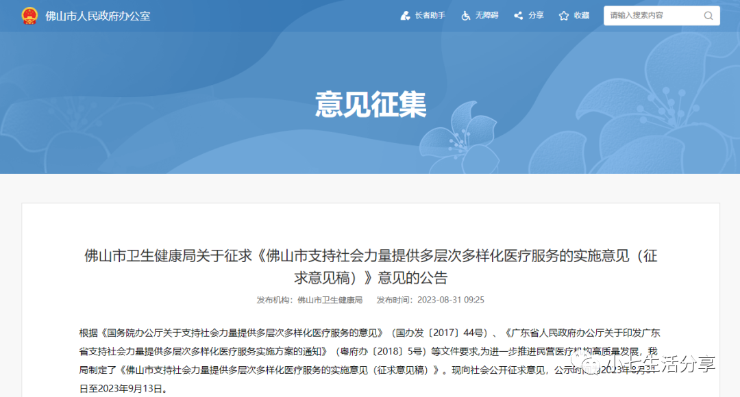 最近看到了一个消息:佛山市发布了一项重磅医疗政策——《佛山市支持社会力量提供多层次多样化医疗服务的实施意见(征求意见稿)》。