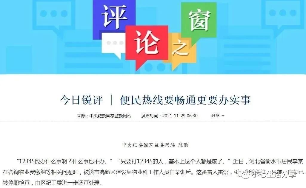 希望通过此次事件,其他地方和部门也要引以为戒,对群众诉求做出及时回应,真心诚意帮助群众解决问题,使12345真正成为便捷、高效、规范、智慧的政务服务“总客服”。