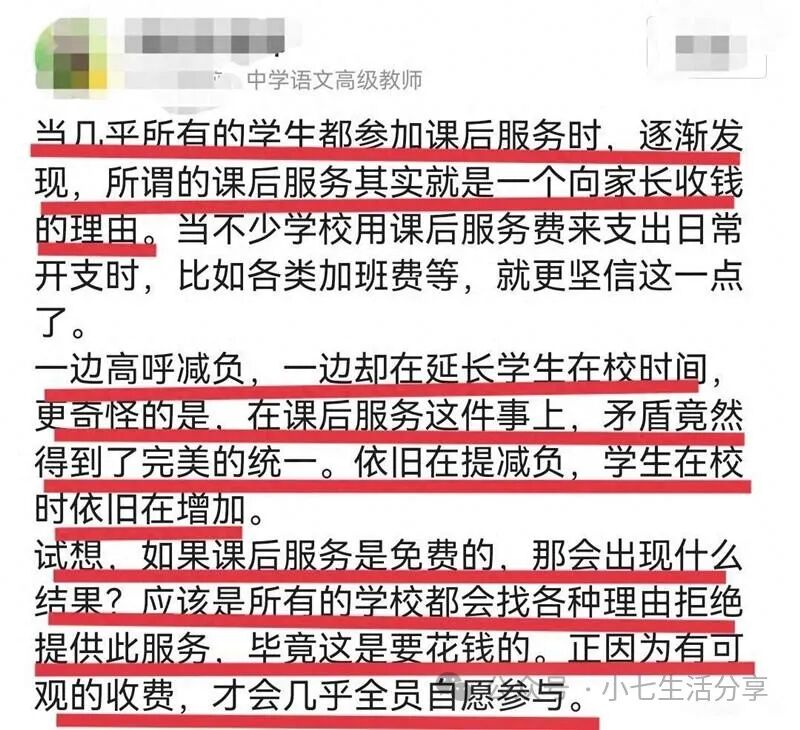 最近看到一位中学语文教师在社交平台上爆料课后服务的内幕。