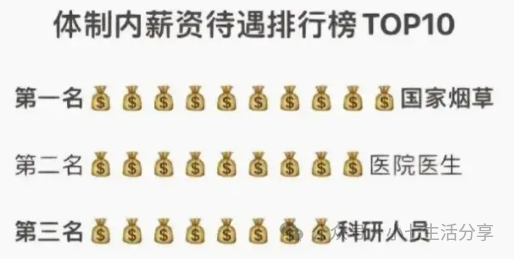 从这份榜单可以看出,国家烟草以较高的薪资待遇位居榜首,而公务员排名比较靠后。