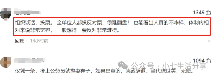 另一网友指出:组织谈话,投票,全单位反对票,难以翻盘!