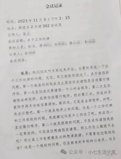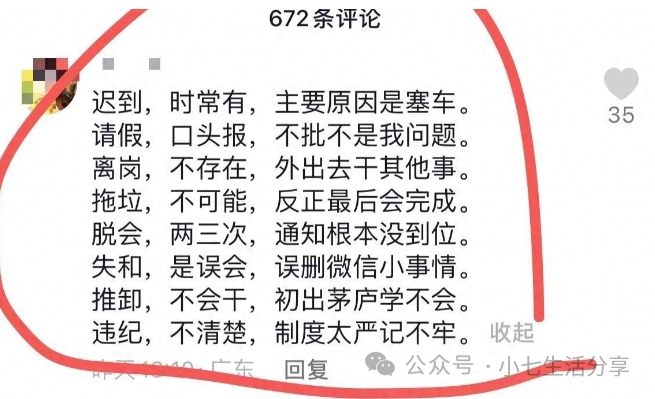 有网友把他的行为总结了8条:迟到、请假、离岗、拖拉、脱会、失和、推卸、违纪。