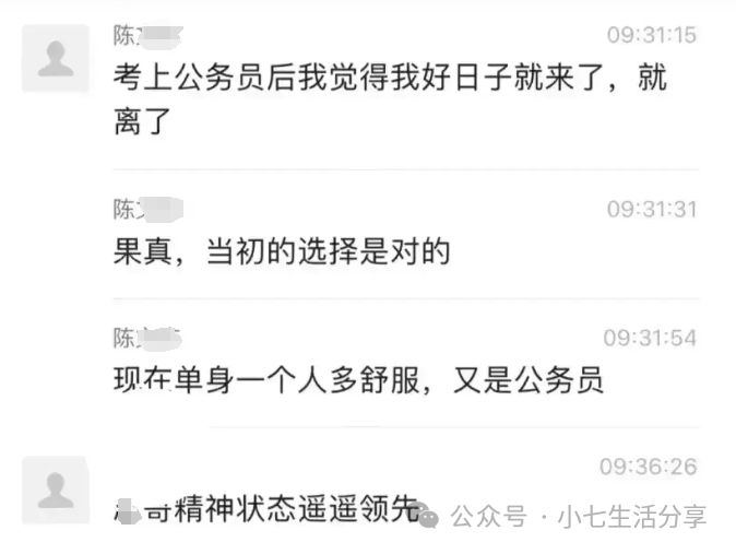 本是抛弃妻子的丑事,陈某居然在群聊中得意洋洋地炫耀:“果真,当初的选择是对的,现在单身,一个人都舒服,又是公务员。”