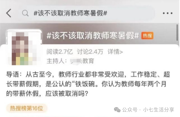近期,某平台关于“该不该取消教师寒暑假”的话题引起了广泛关注,许多人纷纷流言表示赞同。