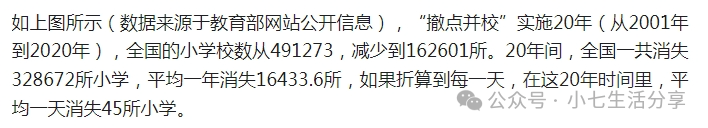 根据相关数据显示,20年中,全国小学校数减少近330,000所。