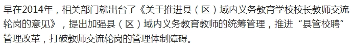 教育部门已经推动教师全员竞聘上岗,加强县(区)域内义务教育教师的统筹管理。