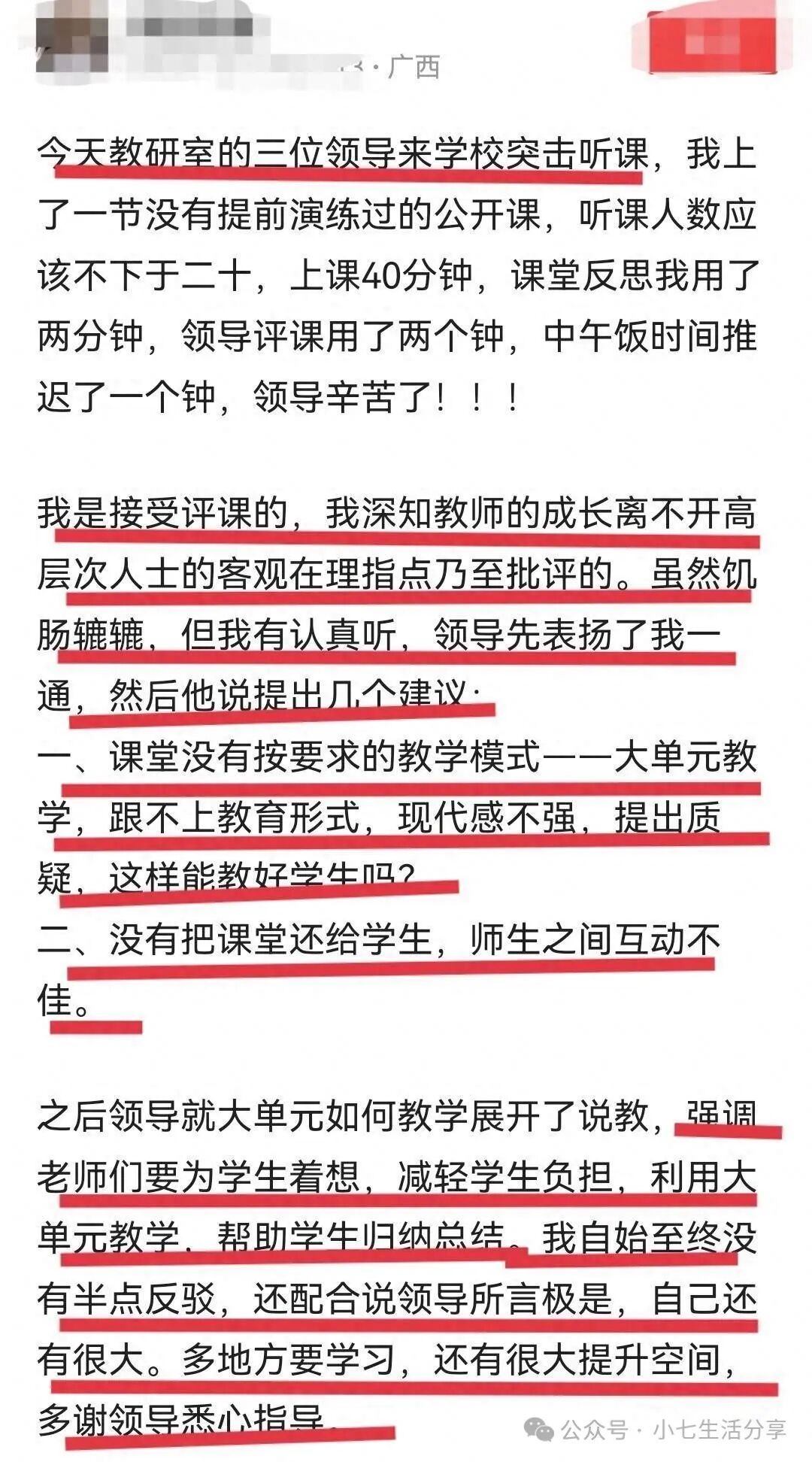 最近一位广西的教师在网上爆出了一次被突击听课的经历,引发了对教研室评课体制的深刻反思。