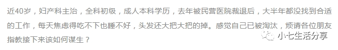 这位医生的求助贴中透露出中年医生的无奈和困境,面对就业难,她感到焦虑不安,生活压力使得她每天都吃不好、睡不好,甚至头发都开始大量脱落。