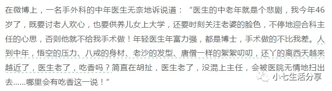 而一些医院对于中老年医生的待遇和重用程度逐渐下降,更是让医生在中年阶段感受到事业的危机。