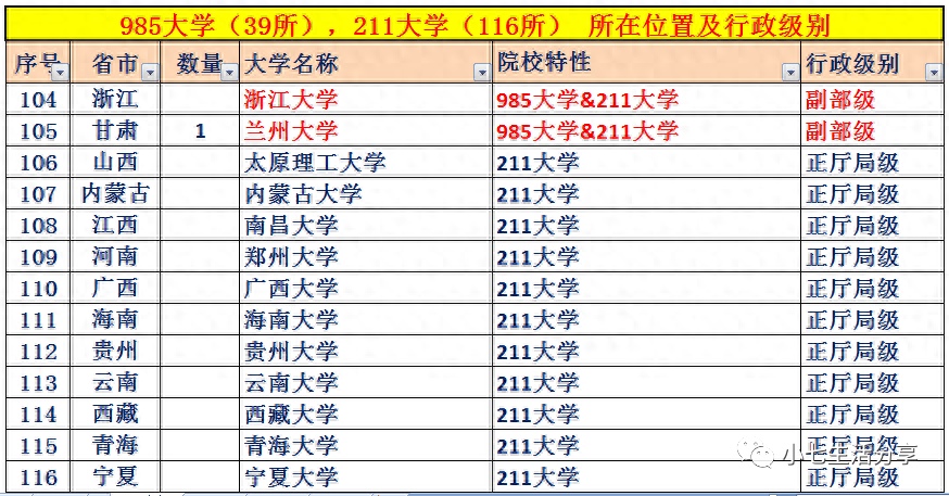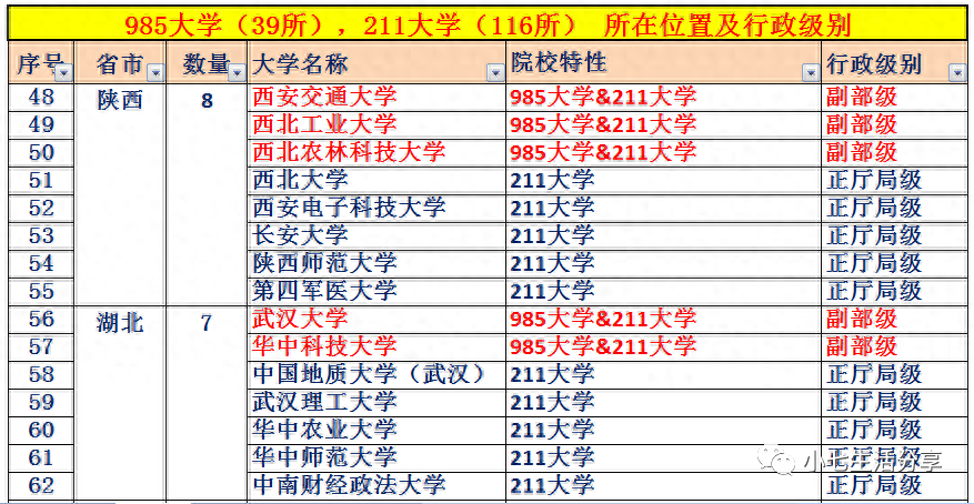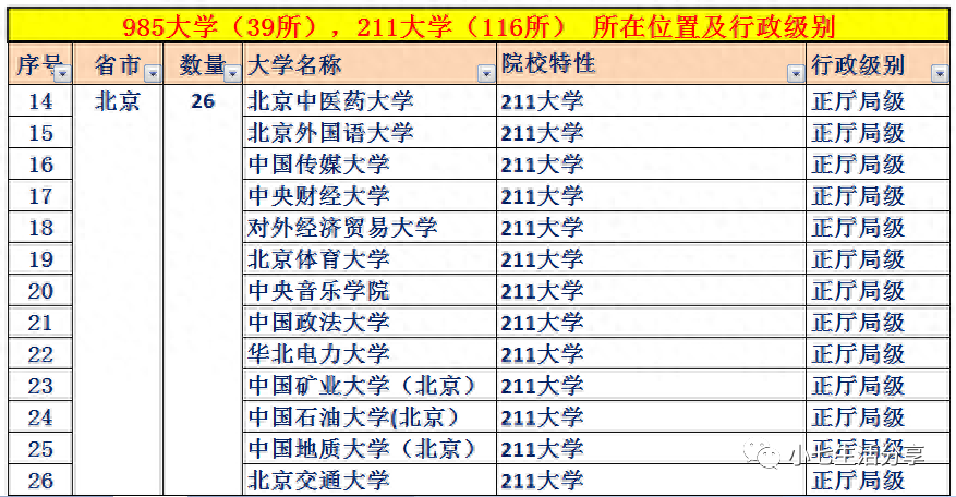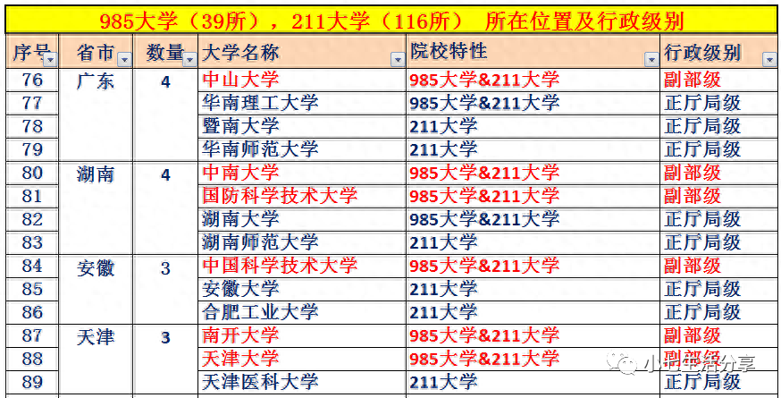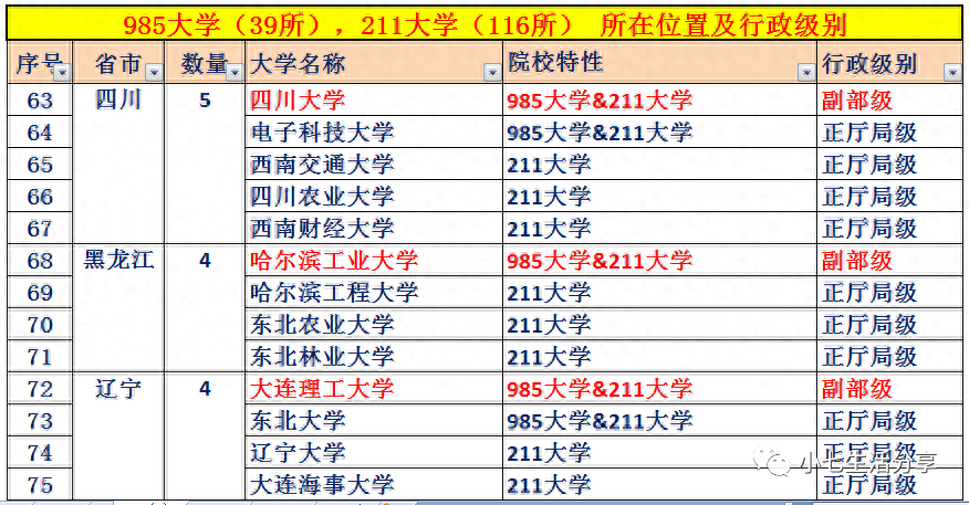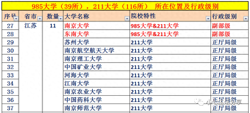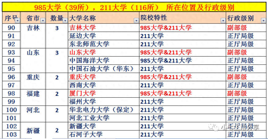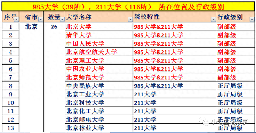 附:985高校(39所)、211高校(116所)所在城市及行政级别