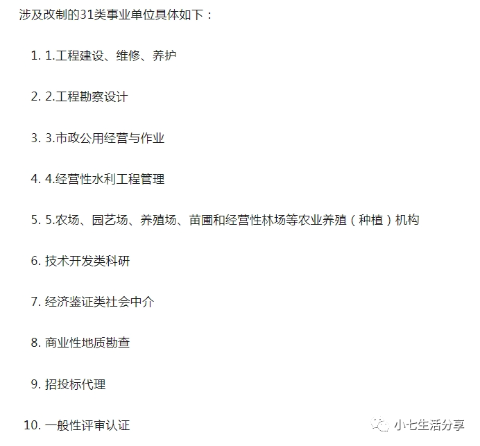那些以生产经营活动为主营业务,并自主收支的收自支事业单位转为企业,这些单位的工作人员将不再属于事业编制。