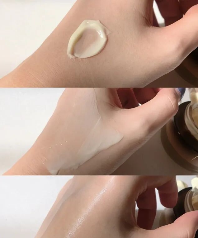 它的质地都是冰淇淋的质地,比较绵密的那种,,滋润度很高的,但是很好吸收,而且很好推开。这款面霜涂在脸上不是那种特别油和粘腻的那种,涂在脸上时好像自己的皮肤在慢慢吸收的感受。