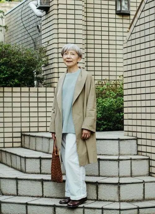 好多人在过了60岁之后,都喜欢穿一些深色的衣服,像是黑色、灰色等,认为老年人就应该穿出这种沉稳的气质,但是深色容易给人一种很不精神,没有活力的感觉,反而是稍微沉稳一些的浅色,更能够把握住简约高级的风格。