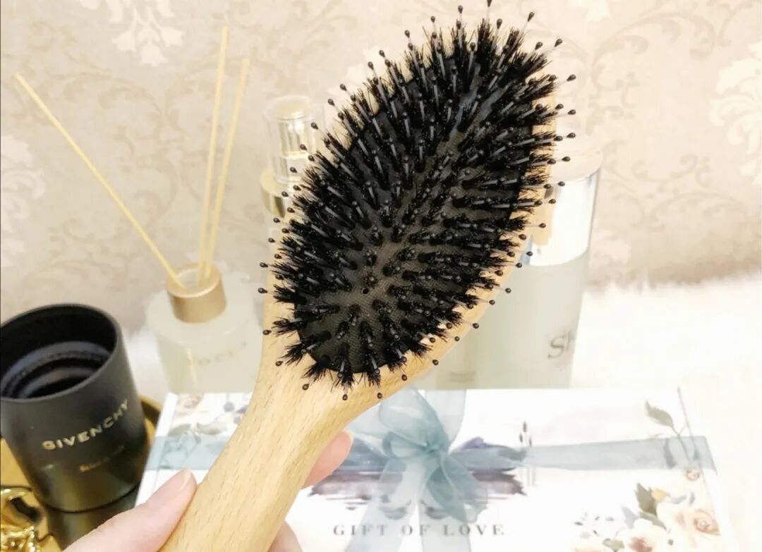 在梳子的选择上,阿娇在用的是鬃毛梳,和别的梳子不同的是,鬃毛梳有贴近人体的油脂,能够抚平毛燥的头发,让头发更有光泽。也很适合平时头发干燥打结的小仙女用,能够帮助头发恢复柔顺。