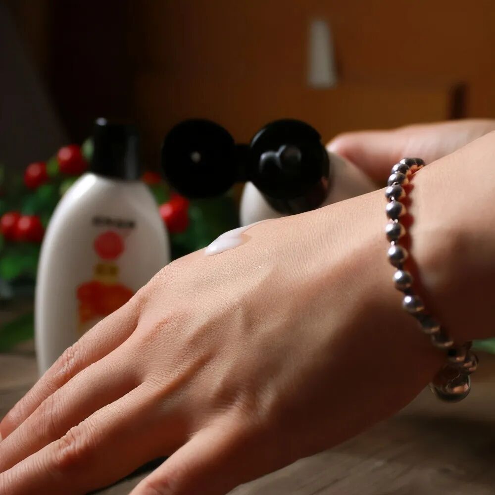 这也是一个老牌国货了,质地比较接近于水,乳状流动性很强,涂抹在皮肤上很好吸收,而且涂抹一下就像水一样化开了,无论是涂脸还是涂手都很适合。