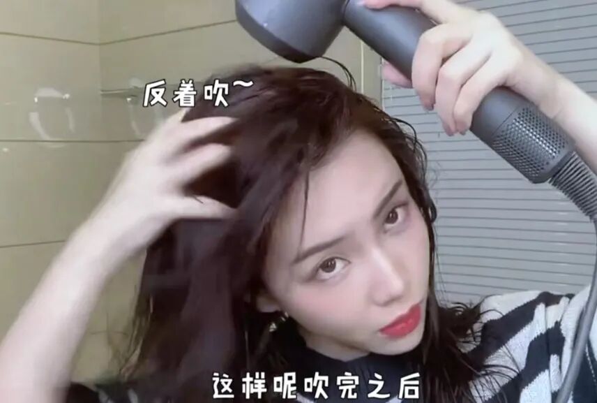 反着吹的定义不是让大家逆着毛鳞片吹,而且把头发拨到另一边去吹干,把头发吹干以后再拨回来,发根吹干头发也就能蓬松了。但是也不能一直吹一个地方,左右可以交替去吹,加快吹干头发的效率,同时头发也蓬松起来。吹头发的时候先热风后冷风,能够平复毛燥,让头发蓬松又柔顺,减少头发因为温度高受损的情况。