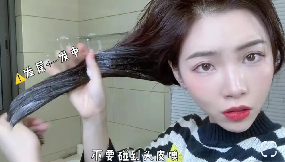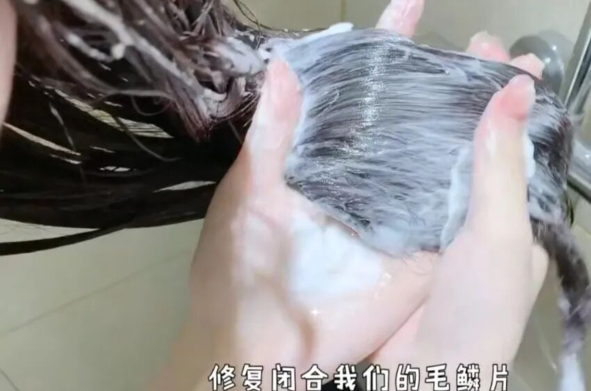这最后一步的护发素是为了闭合我们的毛鳞片,所以我们在涂抹的时候也要按照方向涂抹,如果逆毛鳞片涂抹头发容易毛燥。稍微等一会,再用温水把护发素冲洗干净就可以了,这样交加的护发素涂法,头发会柔顺加倍,修护损伤的能力也加倍。